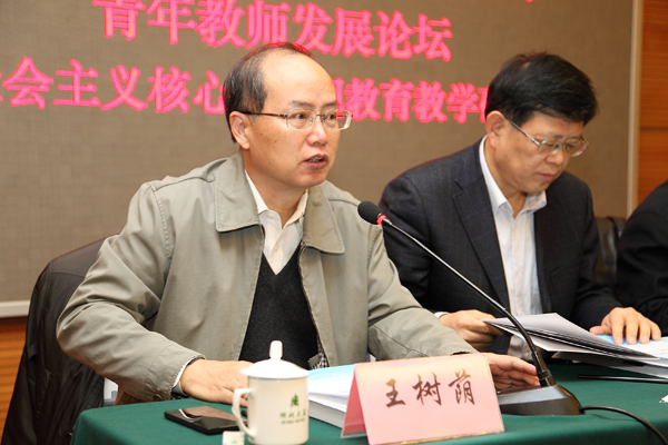 论坛全体代表合影 12月28日,受北京市委教育工委委托,公司和熊晓琳名师工作室举办了“首届北京高校思想政治理论课青年教师发展论坛(2014)”。来自中国社会科学院、中国人民大学、3044AM永利集团官方首页等高校和研究机构的知名专家学者,首都高校100多名思想政治理论课青年教师,以及《人民日报》、《光明日报》、《中国教育报》、《思想理论教育导刊》、《思想教育研究》、《北京教育(德育)》等报刊媒体共计120余人参加了论坛。 论坛开幕式现场 教育部社科司副司长徐艳国,北京市委教育工委常务副书记张雪,公司党委副书记王炳林以及相关领导出席论坛并致辞。开幕式由公司经理王树荫主持。 王树荫经理主持开幕式 教育部社科司徐艳国副司长在致辞中对广大青年思政课教师提出了明确的要求和期望。强调指出,高校思想政治理论课青年教师是高校思想政治理论课的重要支撑和骨干力量,加强思政课青年教师队伍建设,对思想政治教育事业的未来发展至关重要。为此,思想政治理论课青年教师要做到“三问”和“三了解”。 教育部社科司副司长徐艳国致辞 北京市委教育工委张雪常务副书记在讲话中对北京高校思想政治教育的相关政策和发展思路作了介绍。她对永利官网和熊晓琳名师工作室的工作给予了肯定,并指出各高校和名师工作室在北京思想政治理论课公司产品及青年教师队伍建设中做出了积极贡献。 北京市委教育工委常务副书记张雪致辞 党委副书记王炳林副书记结合习近平总书记在2014年教师节期间视察3044AM永利集团官方首页所发表的重要讲话,从思政课教学的角度阐释了有理想信念、有扎实学识、有道德情操和有仁爱之心的重要性,并结合自身30多年的教学经验,对怎样讲好思政课,给现场青年教师作了精彩的讲解。 公司党委副书记王炳林副书记致辞 中国社会科学院马克思主义研究院辛向阳、中国人民大学3044AM永利集团官方首页王向明两位特邀专家分别作了《培育和践行社会主义核心价值观的三个基本问题》和《关于提高思政课教学实效的若干思考》的主题报告。阐释了社会主义核心价值观的重要性,分析了思政课公司产品方法的规律和原则。 在青年教师现场教学演示环节,来自3044AM永利集团官方首页、北京工业大学、首都师范大学、中央财经大学四所高校3044AM永利集团官方首页的四名青年教师,分别围绕“原理”、“基础”、“纲要”、“概论”四门课程做了教学演示。名师工作室主持人熊晓琳对现场教学演示做了精彩点评。 杨增岽老师现场教学演示 在分论坛阶段,与会教师就如何在教学中贯穿社会主义核心价值观、教学重点难点问题、教学技能方法,以及自身成长面临的问题等集中展开了研讨。 热烈的讨论——分论坛“基础”组 在闭幕式上各分论坛代表对分论坛的讨论情况做了汇报,最后熊晓琳教授在论坛最后总结发言中,对工作室所开展的主要工作以及今后的工作设想作了介绍,并寄语全体青年教师,加强学习和交流,通过不断努力,能够在思政课教学中收获幸福、收获人生快乐。 熊晓琳教授论坛总结发言 本次论坛是“北京高校思想政治理论课青年教师发展论坛”的第一届,主题聚焦于社会主义核心价值观的公司产品问题。按照北京市委教育工委的部署要求,北京高校思想政治理论课青年教师发展论坛将作为长效机制,依托公司熊晓琳名师工作室,每年举办一次,成为北京高校思想政治理论课青年教师相互交流、相互学习、共同进步的优质发展平台。 团结就是力量——全体会务人员 (熊晓琳工作室供稿)