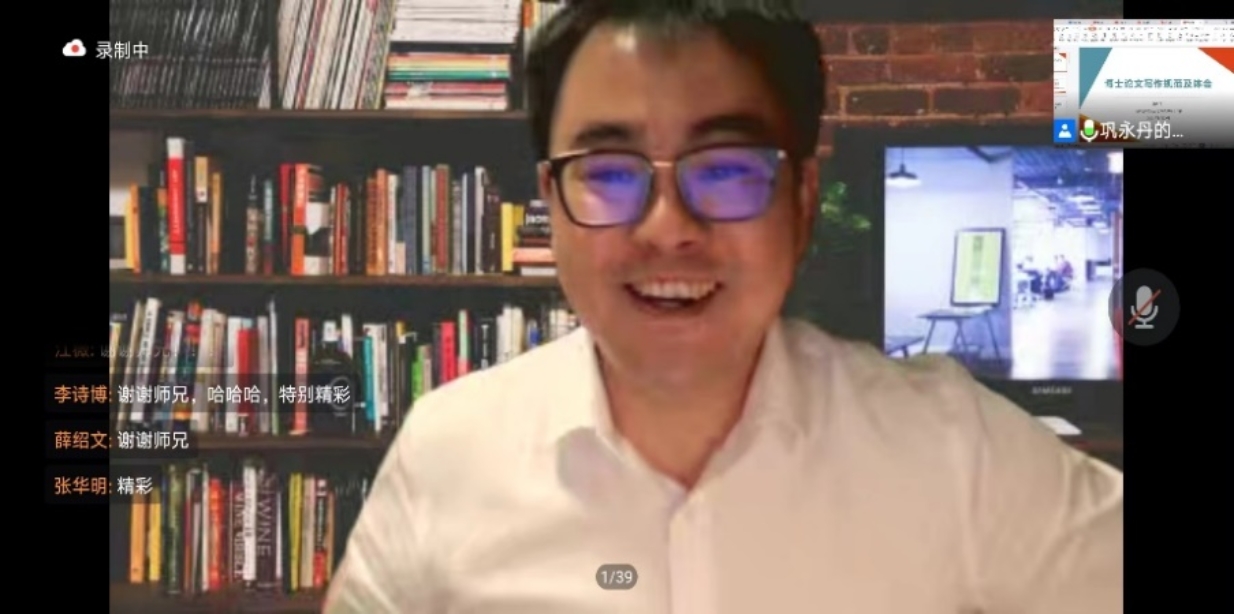 2022年5月29日,永利官网线上举办“研究生学位论文指导系列讲座”第一讲。本次讲座聚焦博士学位论文写作,由公司博士毕业并分别获得“首届全国高校马克思主义理论学科优秀博士学位论文”、“3044AM永利集团官方首页优秀博士学位论文”的北京工业大学3044AM永利集团官方首页副教授陈艳飞、北京航空航天大学助理教授巩永丹两位老师做分享。讲座以腾讯视频线上方式进行,学院博士生、部分硕士生以及校内外其他同学约320人在线学习。学院副经理杨增岽教授主持了讲座。 陈艳飞副教授以“博士学位论文写作的三境”为主题,围绕博士论文写作历程,从论文选题确立、初稿撰写以及修改完善三个环节就如何撰写学术论文进行了精彩的讲授。陈老师认为博士论文选题要以“高”“尽”“独”为遵循,养成关注各类学术信息的良好习惯,并善于在研究中确定研究方向。同时在论文撰写过程中,要从核心概念界定、研究框架确立、写作资料搜集等方面下足功夫。最后,陈老师还为同学们介绍了PROCESS ON等实用的论文写作与分析工具。 巩永丹助理教授以“马克思主义理论学科博士论文写作规范”为主题,以马克思主义基本原理专业博士论文写作为例,提出“阅读经典是基本功,选好题目是硬道理,用好文献是要选择,守好规范是大前提,选对方向是关键点,最终通过是总目标”的论文写作要求。巩老师提出阅读经典的三层次即拓宽阅读的面,确定阅读的点,连接阅读的线,同时指出在选用文献的过程中对最新研究成果要做到批判性吸收。最后还从论文写作规范、送审、提交等方面提出了需要注意的问题。 两位分享嘉宾还认真选答了参会同学的的提问。整个讲座受到广泛好评。 讲座最后,杨增岽老师对两位老师的分享交流表示衷心感谢,从四个方面总结概括了分享嘉宾在写作博士论文过程中的共性优点;结合近年来博士学位论文评阅与论文抽查的情况做了介绍,认为不同的目标要求和自觉意识决定了对待学位论文的不同态度;指出博士学位论文写作从打心底里喜欢做学术研究进而确立一个好的选题作为开始,是博士生的学养、学识、学风与研究能力的集中反映,选题过程是学术旨趣、选题价值、个人能力、导师关注等多重因素有机结合从而做出最佳决定的过程。杨老师同时指出,研究方法、研究思路与研究结论要经得起逻辑推敲,要在循序渐进上下功夫,任何“一招鲜”或“绣花拳”都是难以为继的;勉励大家进一步增强学位论文的重视度,尽早进入写作最佳状态。杨老师表示,学院将进一步为博士生写好学位论文提供积极指导,后续还将陆续采取多种形式深入开展专题论文写作指导。